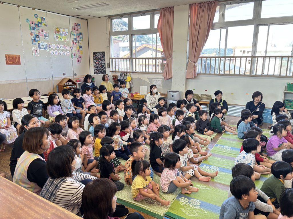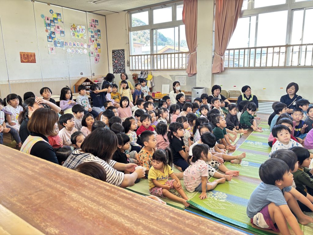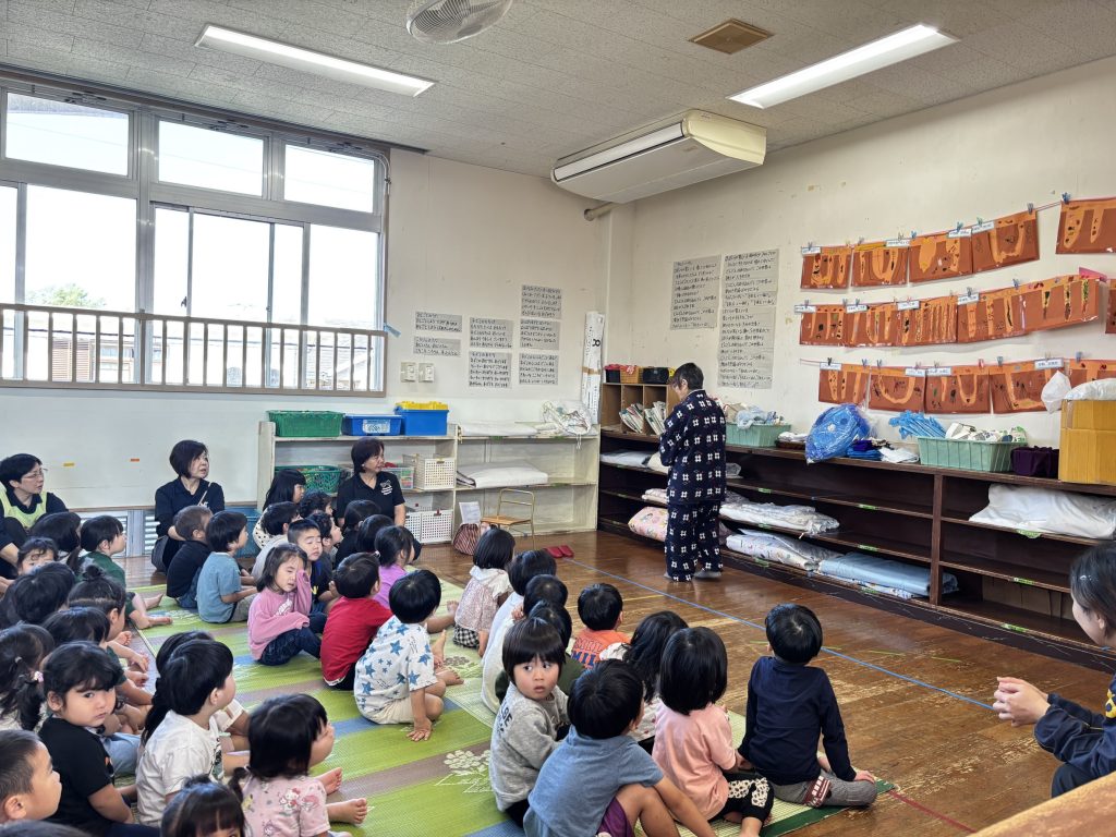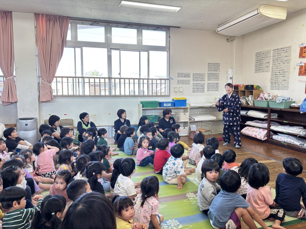 2025年11月22日 / 最終更新日 : 2025年11月22日 輪内保育所 新着情報 みんなで楽しんだおはなし会【輪内保育所】 今日は遠い千葉県から、おはなし会のおばさん「おかつさん」が来てくれました。 おかつさんのユーモアたっぷりのお話に、子どもたちは笑顔がはじけ、大喜びのひとときとなりました☺