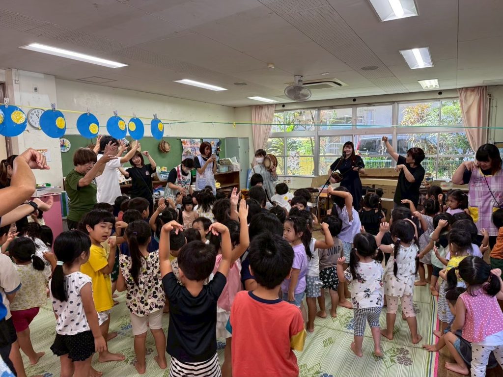 2025年11月6日 / 最終更新日 : 2025年11月6日 金久保育所 新着情報 唄あそび(平田まりなさん)【金久保育所】 平田まりなさんが 島唄遊びを教えにきてくれました! 島唄にあわせる手遊びも教えてもらい 子どもたちもみんなでまりなさんの歌に合わせて 楽しみました! 最後はみんなで六調を踊りました!