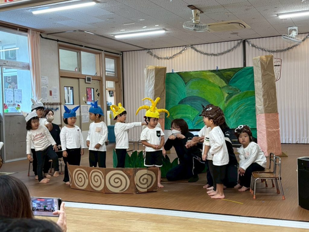 2025年12月15日 / 最終更新日 : 2025年12月15日 平田保育所 新着情報 発表会♪ ぞう組、きりん組の発表会がありました! 劇やお遊戯、手話にことわざなど盛りだくさん(^^♪ たくさんのお客さんにみてもらえて、とても嬉しそうな子どもたちでした♡ ぞう組 劇「さんびきのやぎのがらがらどん」 ぞう組 劇「めっきらもっきら どーんどん」 きりん組 劇「11ぴきのねこ ふくろのなか」 太鼓「ワイド節」 手話「あまくろ」「にじ」